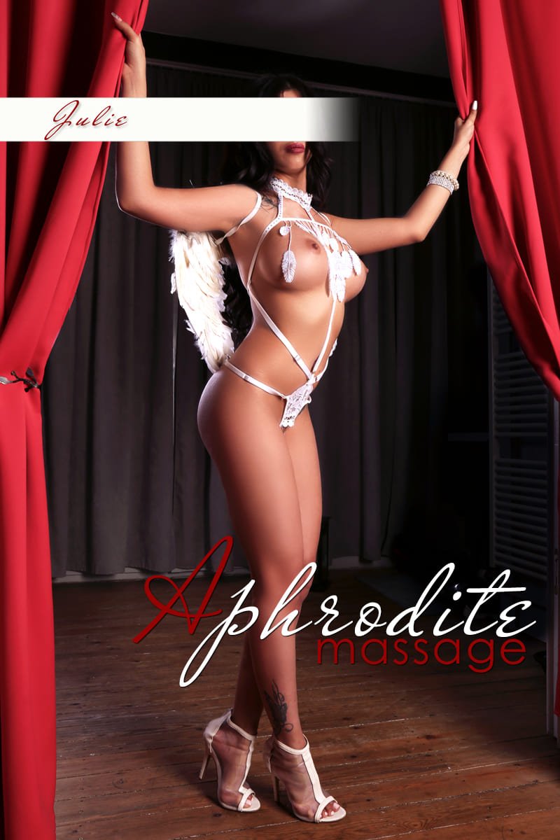 Julie est une jeune femme douce et ravissante de 26 ans. Avec son tempérament calme et son expérience dans l’art du massage tantrique et érotique, elle vous fera oublier la notion du temps. Ses formes et ses mouvements sensuels vous offriront un massage qui éveillera toute votre énergie charnelle. Elle vous apportera tant de délicatesse et de douceur que vous deviendrez vite dépendant de ses massages !